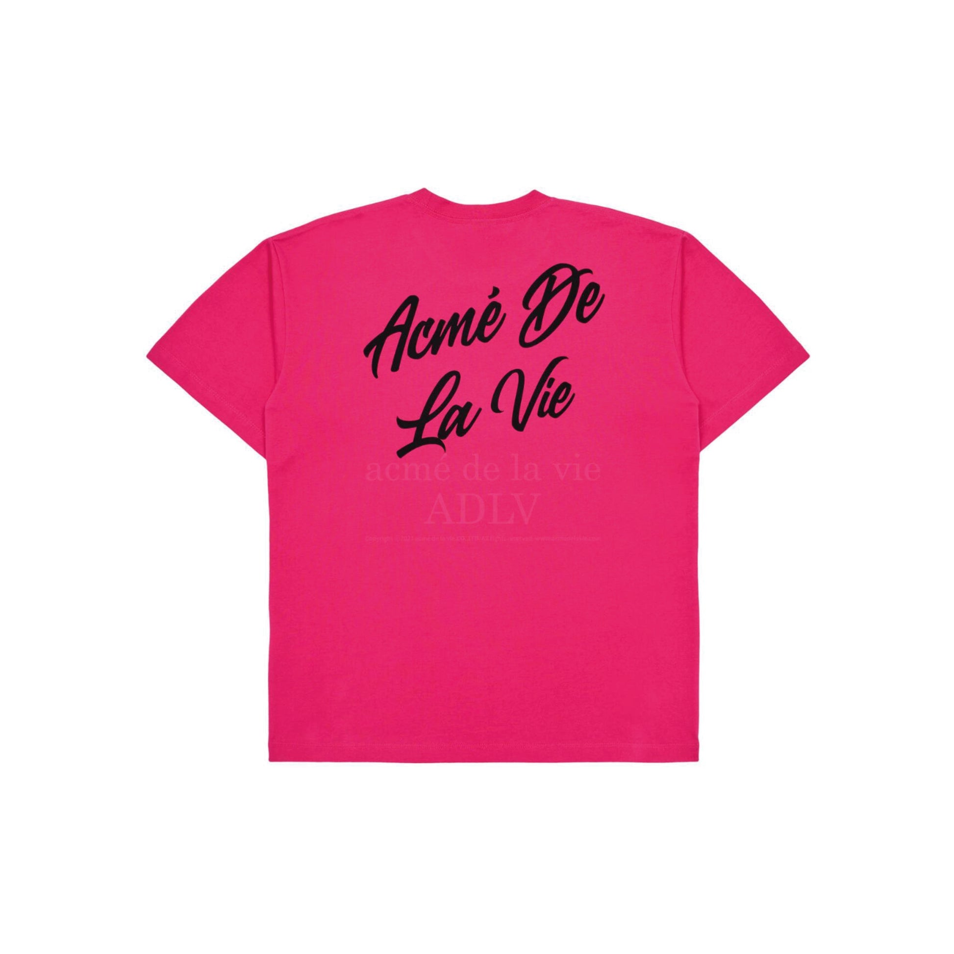 Make a bold statement in the ADLV Script Logo Printing SS T-Shirt 'Pink', a clean and confident essential from Acme De La Vie (ADLV). Featuring a minimalist script logo on the chest and a tone-on-tone oversized ADLV print across the back body, this tee brings together K-fashion simplicity with bold color energy.