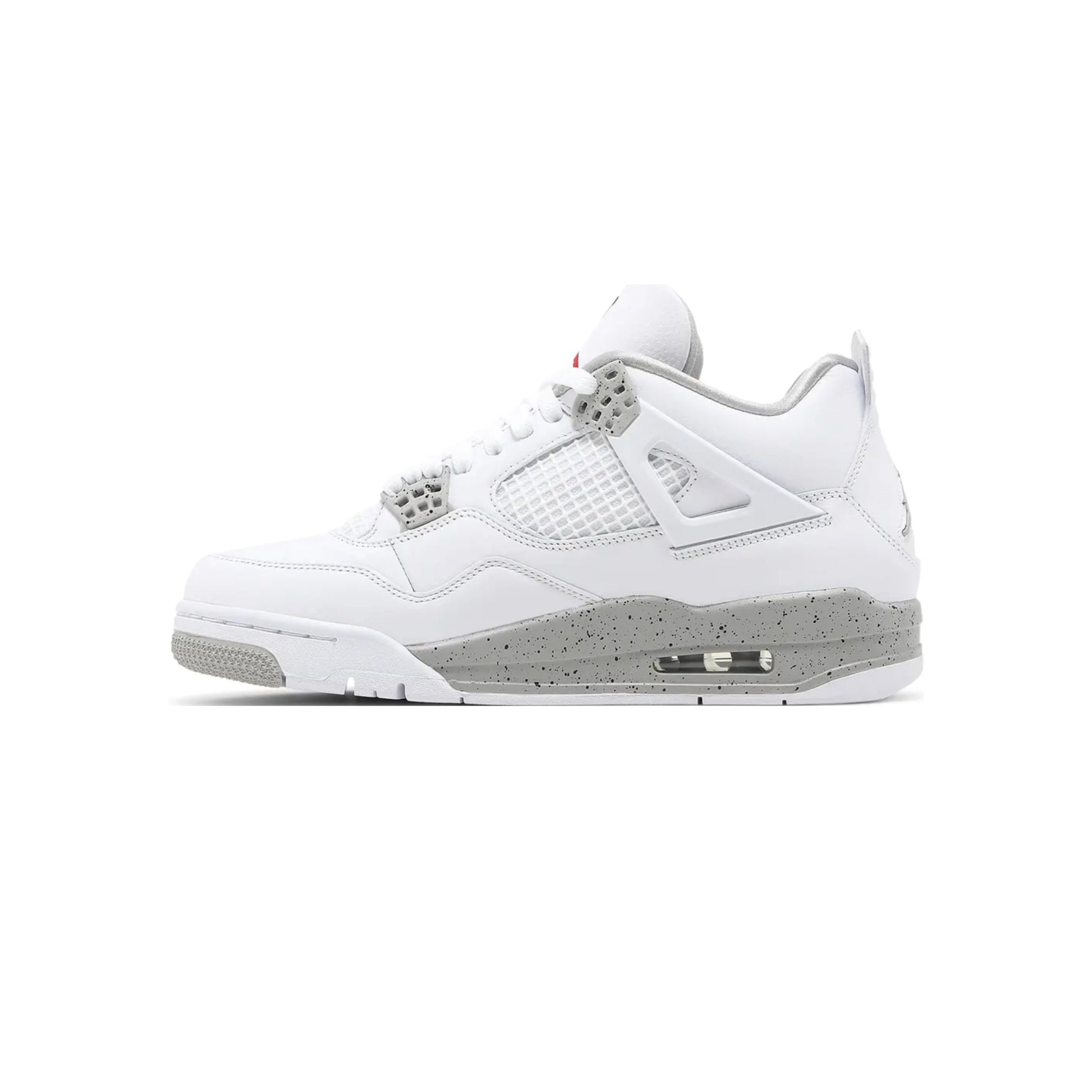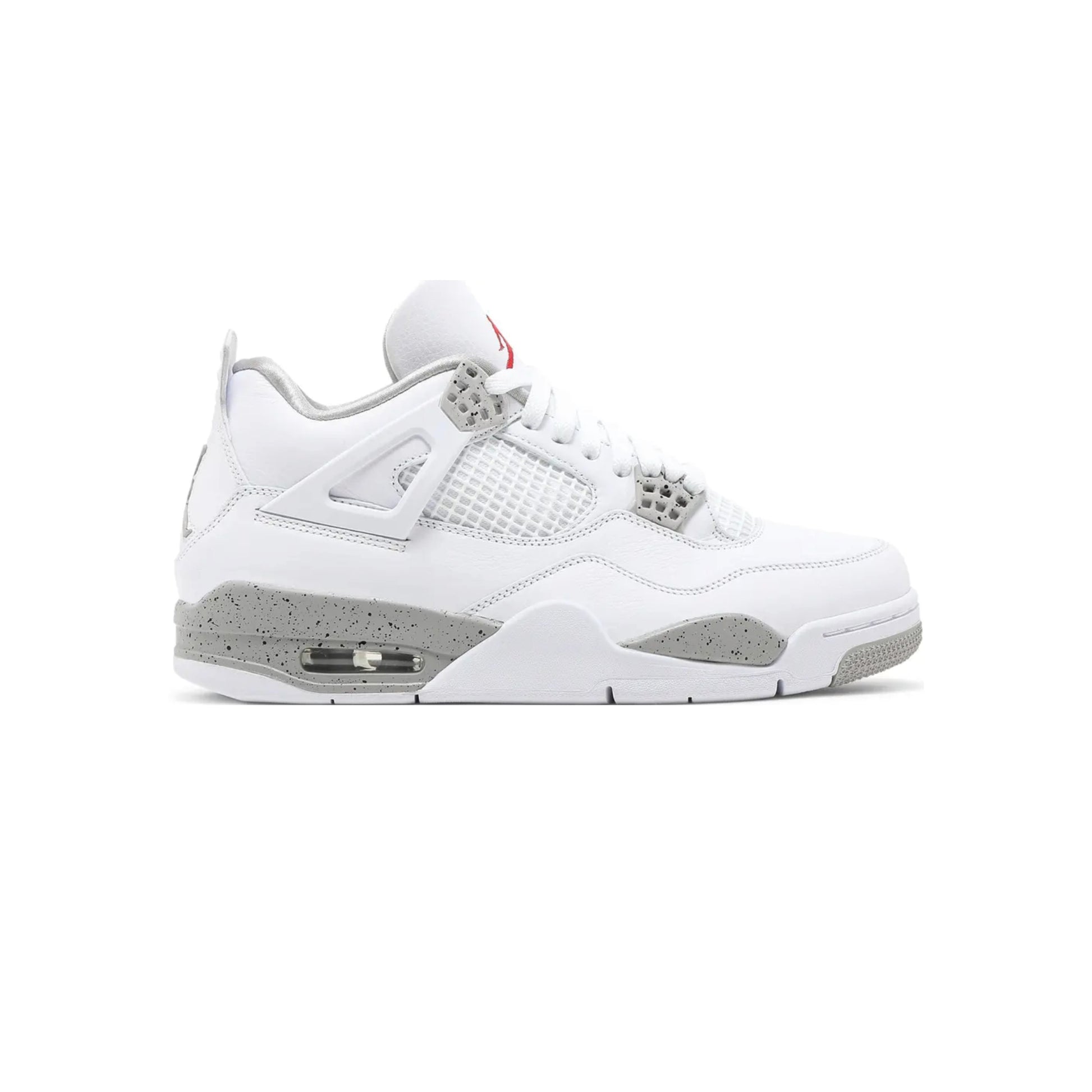 A clean classic reimagined, the Nike Air Jordan 4 Retro ‘White Oreo’ (2021) delivers premium simplicity with heritage flair. Dressed in a crisp white leather upper, this AJ4 is elevated by speckled Cement Grey accents on the eyelets and midsole — a subtle nod to the original ‘Oreo’ colorway. The red Jumpman logo on the tongue adds just the right amount of contrast. Built with visible Air cushioning and supportive mesh panels, the sneaker delivers all-day comfort and timeless court-to-street style.