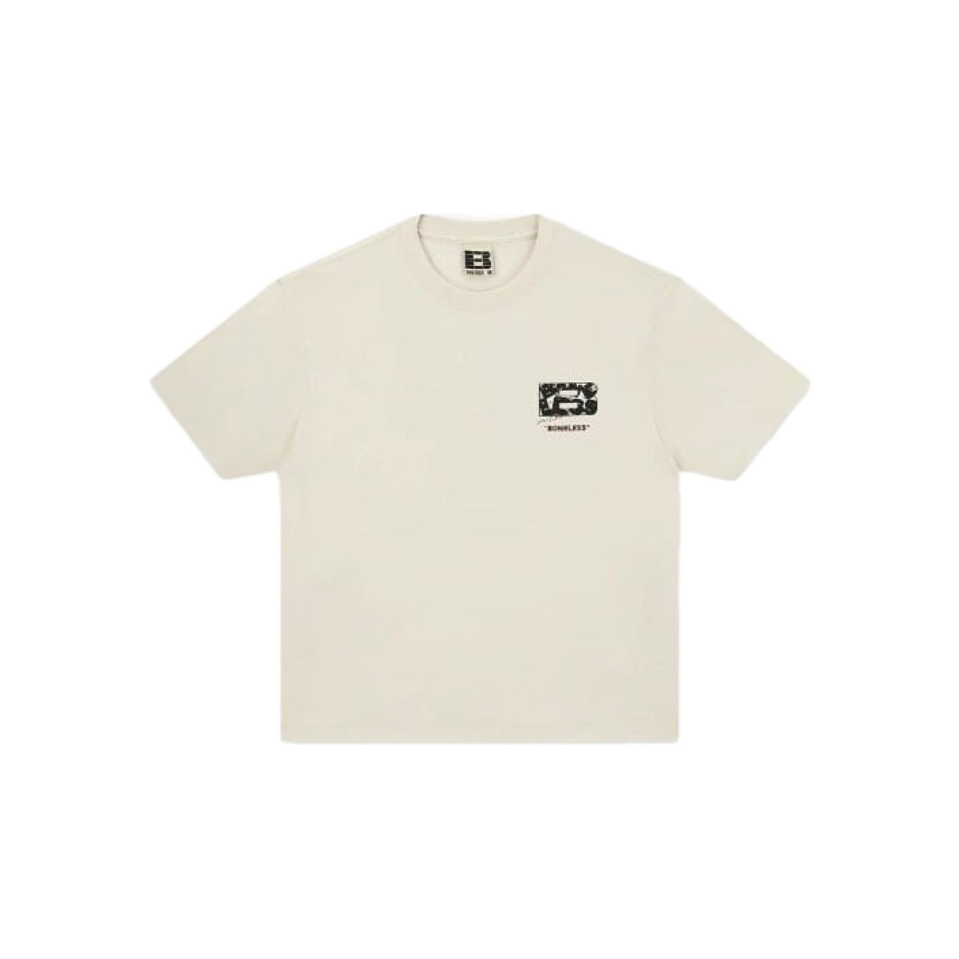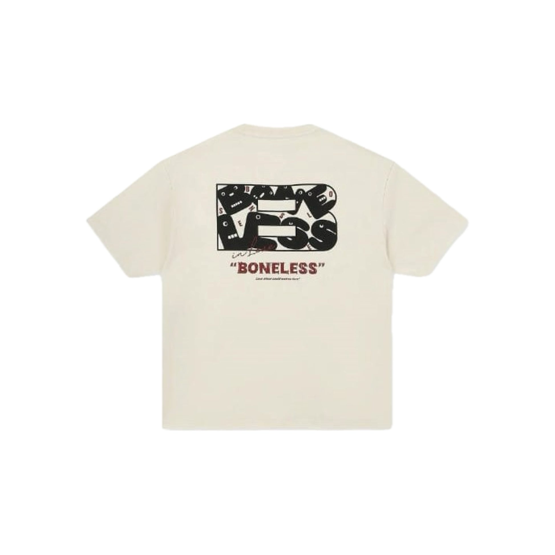 The Boneless Fun Lettering Short Sleeve T-Shirt in Beige is a playful yet minimal piece, perfect for everyday streetwear. Featuring a small Boneless logo on the chest and a bold oversized graphic print on the back, this tee blends simplicity with standout detailing.