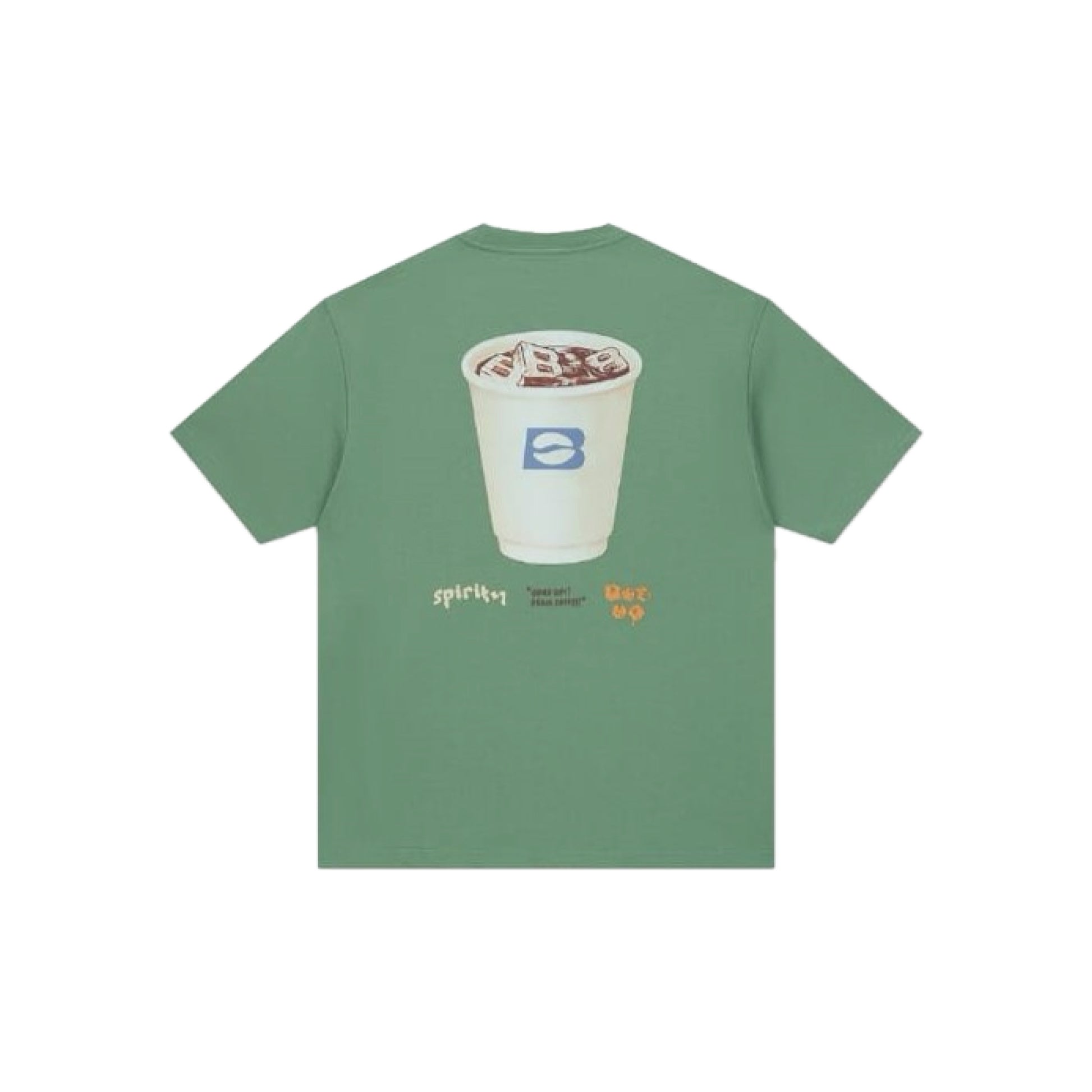 The Boneless Iced Americano Illustration Short Sleeve T-Shirt in Green blends playful graphics with casual streetwear style. Featuring a small “B” logo on the chest and a bold iced coffee cup illustration on the back, this tee delivers a refreshing twist to everyday wear.