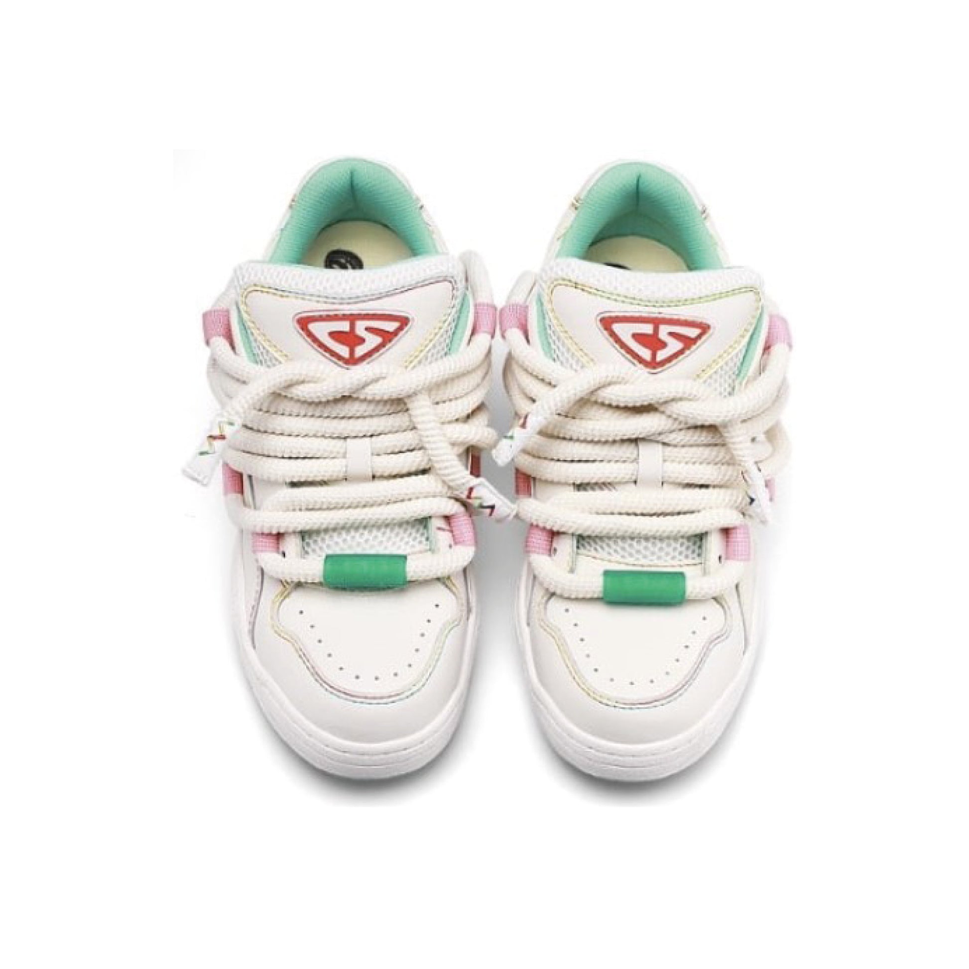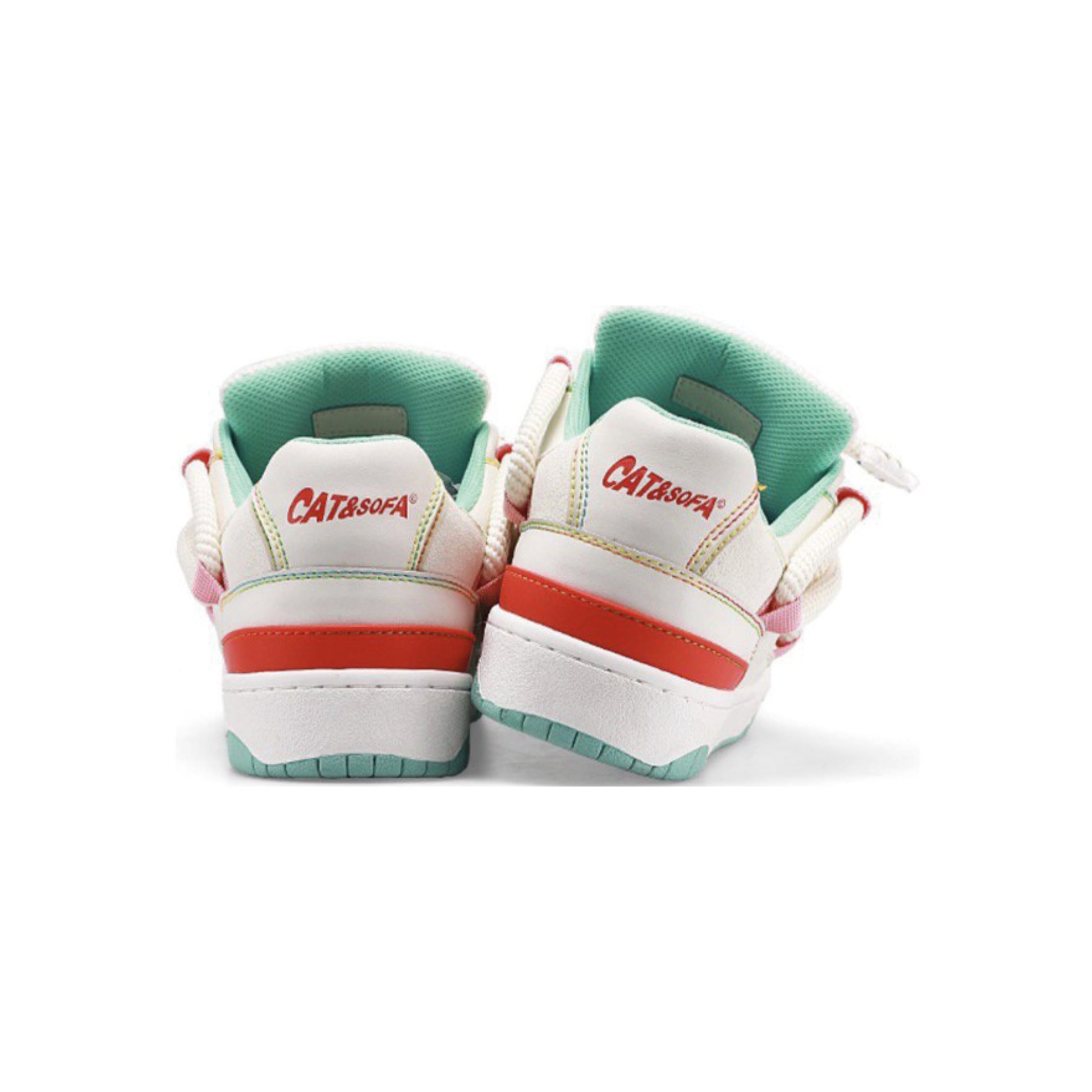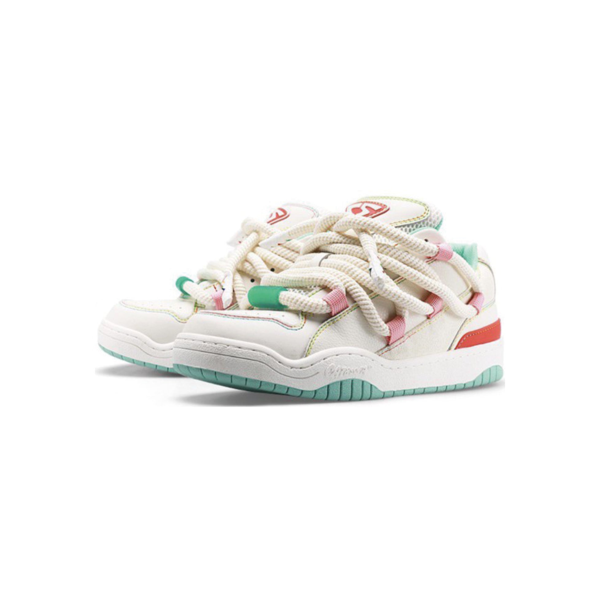 The Cat & Sofa Dread Locks 'Lychee Peach' redefines playful design with an artistic twist. This low-top sneaker features bold rope-style laces, whimsical pastel accents, and premium vegan-friendly leather construction. Inspired by streetwear culture with a hint of cartoonish rebellion, it’s a standout piece that captures attention without trying too hard.