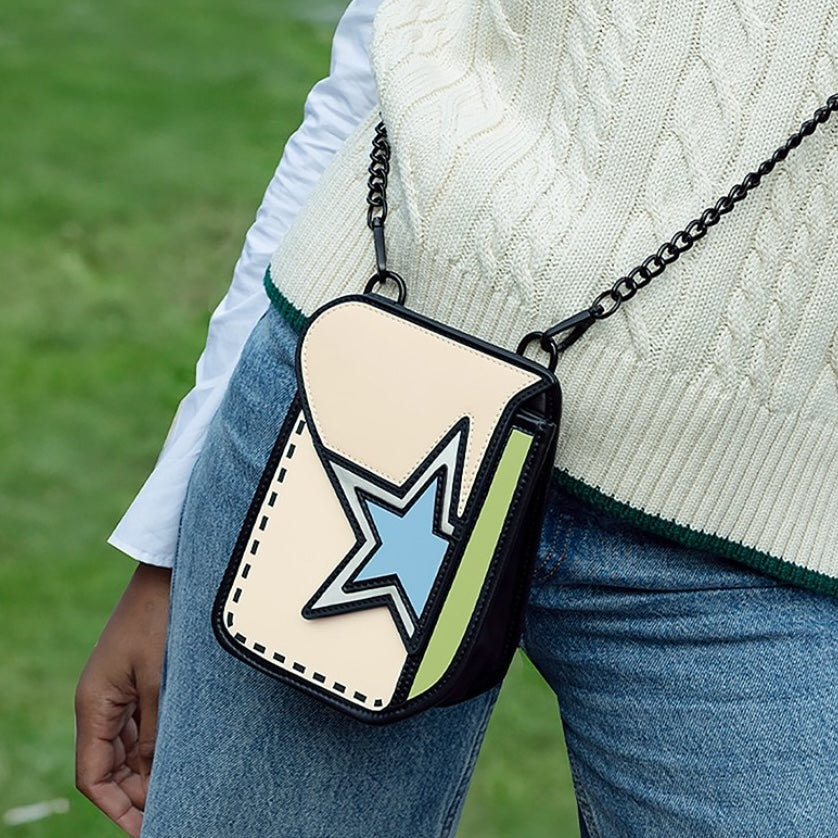 The Jump From Paper Galaxy Bag in Lemon captures the joy of playful design with a refreshing pastel twist. This 2D illusion crossbody combines cream and lime hues with a pop of sky blue in its signature star patch — turning every outfit into a comic-inspired masterpiece. Light, compact, and cleverly constructed, it blends art and practicality seamlessly, proving once again that Jump From Paper accessories are anything but ordinary.