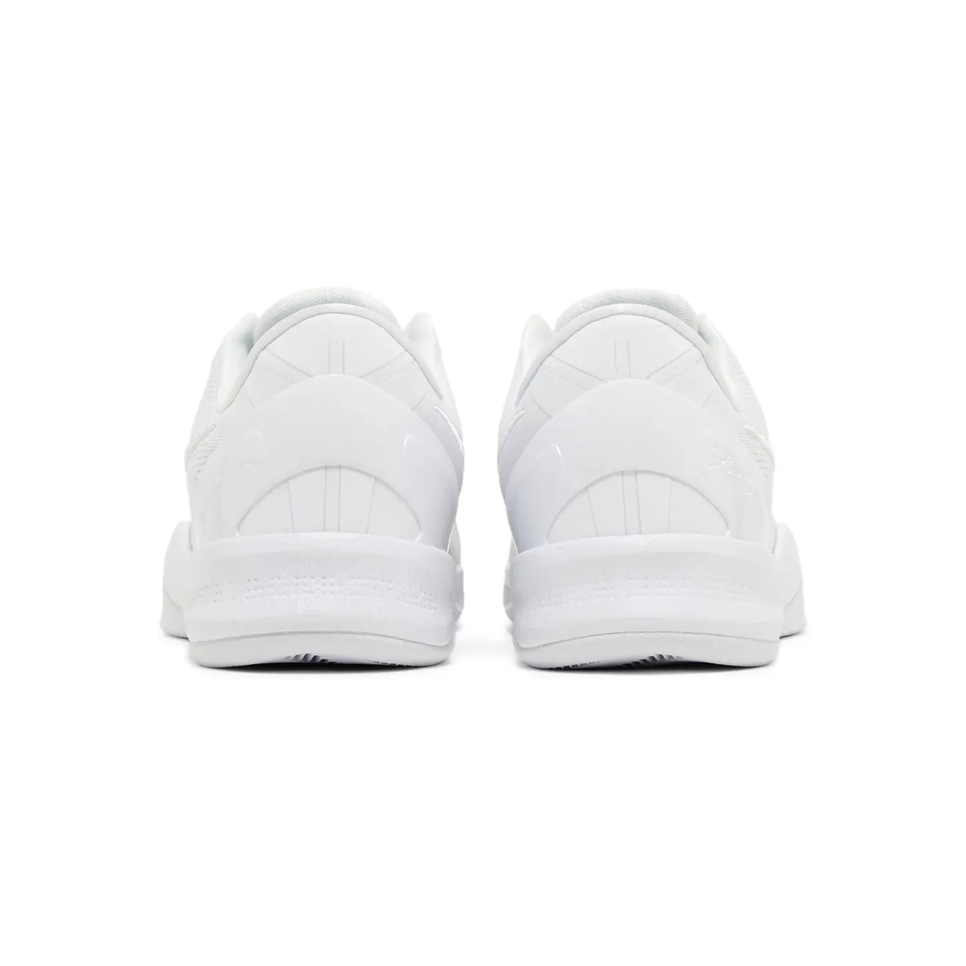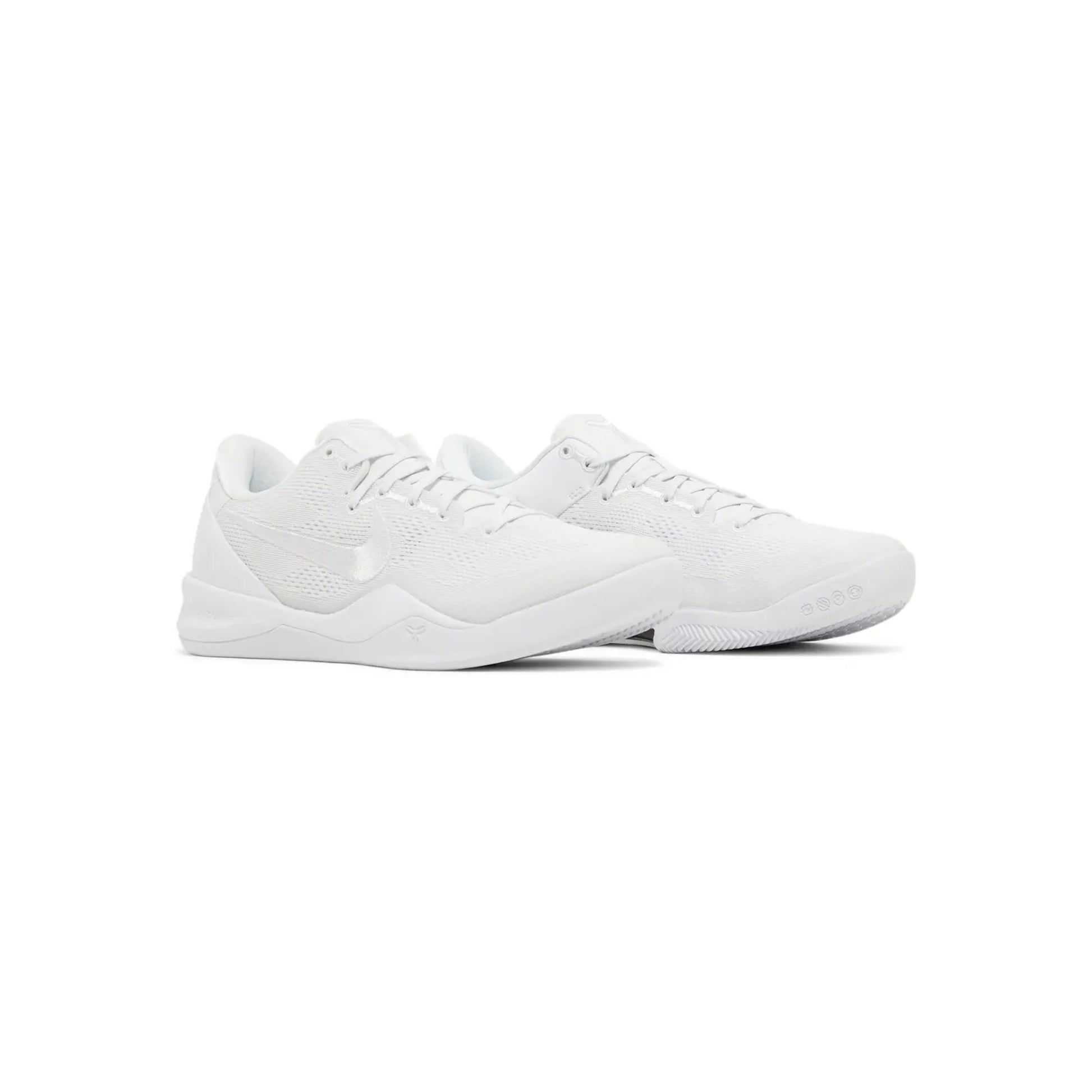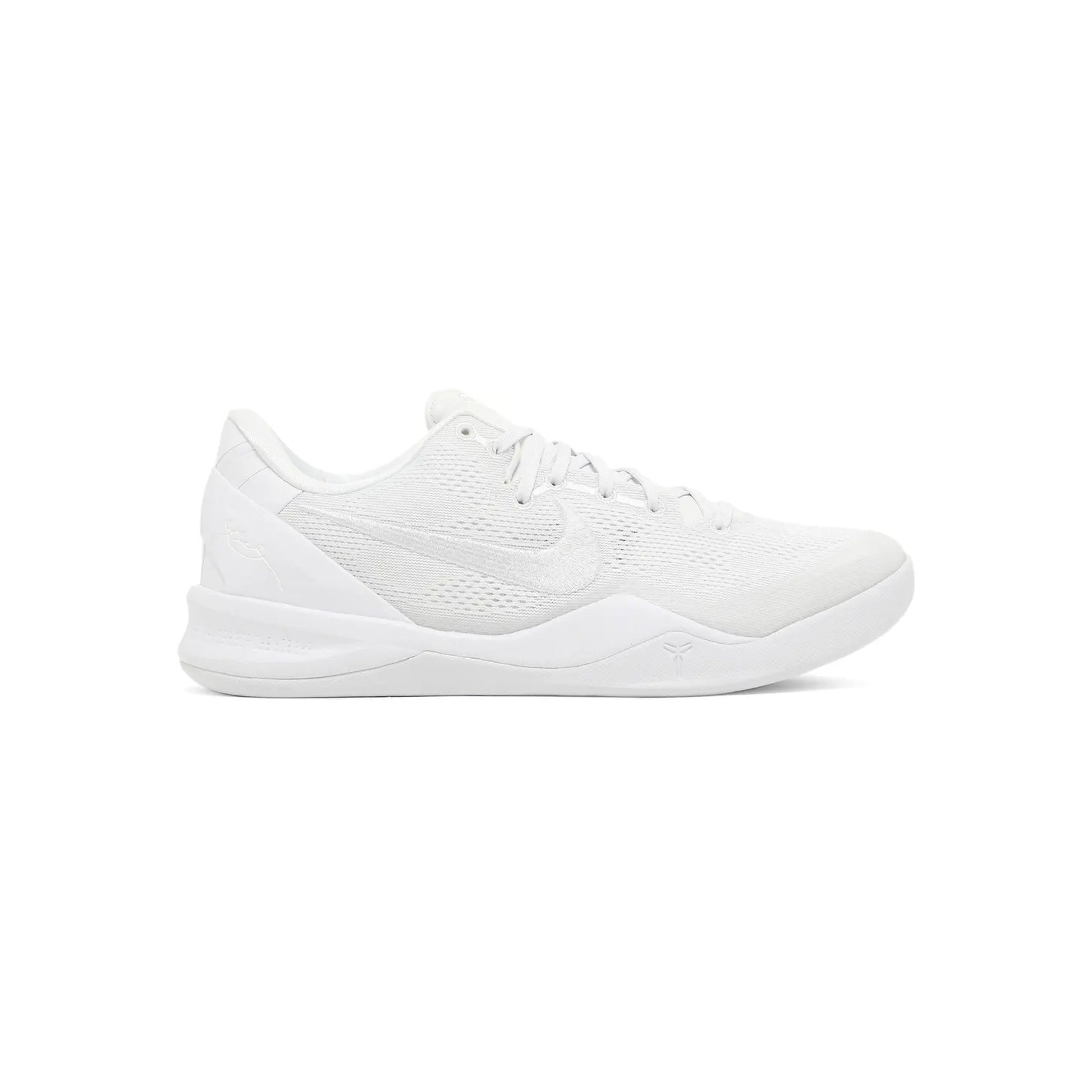 The Nike Kobe 8 Protro 'Halo,' also known as the 'Triple White,' brings back a retooled version of Kobe Bryant's eighth signature shoe in a blank-slate finish.. Designed by Eric Avar, the low-top features an all-white engineered mesh upper with tonal embroidered Swoosh branding. Kobe Bryant’s signature is etched on the external heel counter, while the athlete’s personal logo decorates the tongue. Performance benefits include a drop-in React midsole and carbon fiber shank. Underfoot, a herringbone-tread outsole delivers stop-and-go traction.