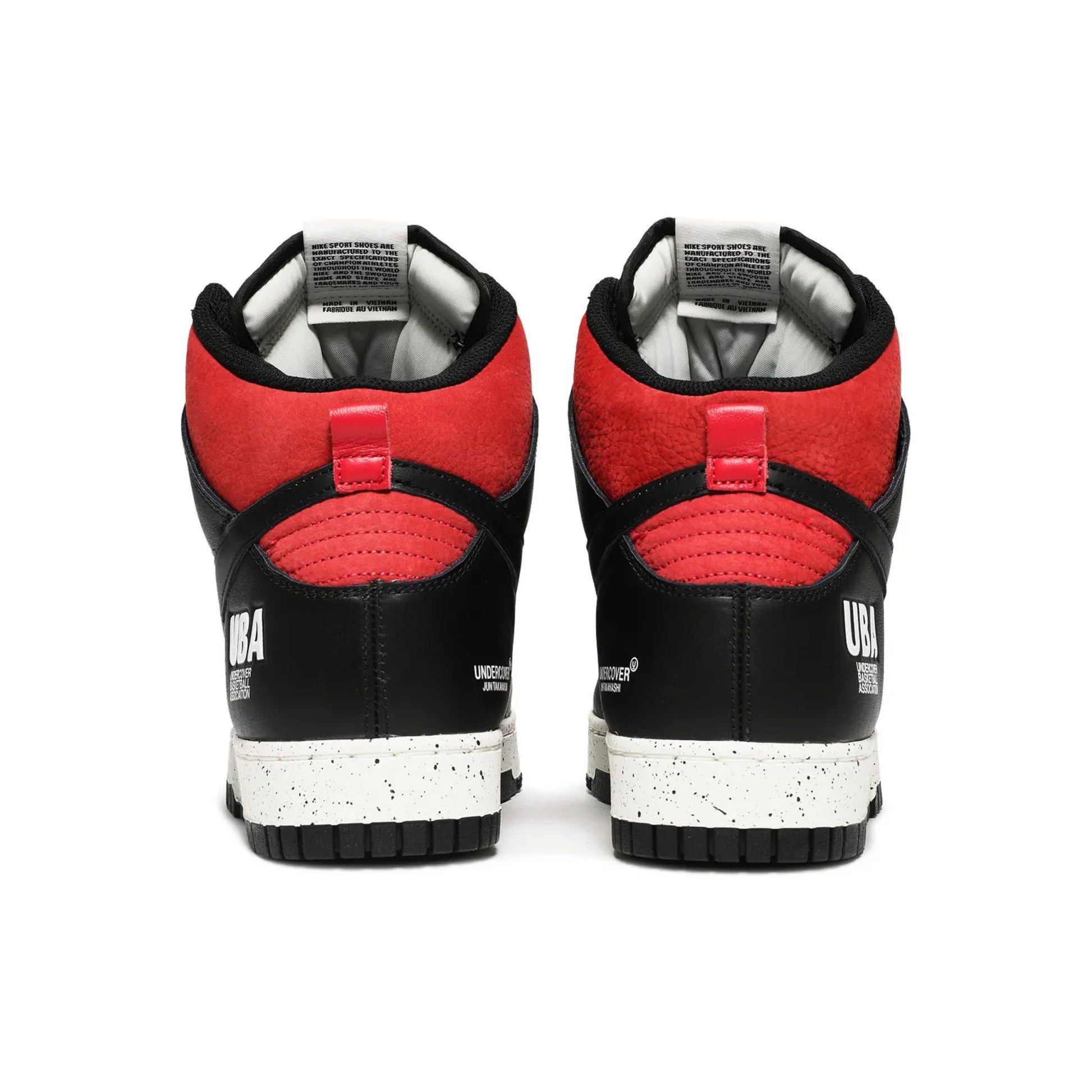 The Undercover x Nike Dunk High 1985 ‘UBA’ delivers Jun Takahashi’s interpretation of the retro hoops shoe, designed for the fictional UNDERCOVER basketball league and featuring the sneaker’s original ‘80s shape and proportions. The upper pairs crimson pebbled nubuck with contrasting overlays in smooth black leather. The lateral heel is marked with Undercover Basketball Association branding, while the opposite side is decorated with an UNDERCOVER logo hit. The high-top is mounted on a modified rubber cupsole with off-white sidewalls covered in speckled detailing.