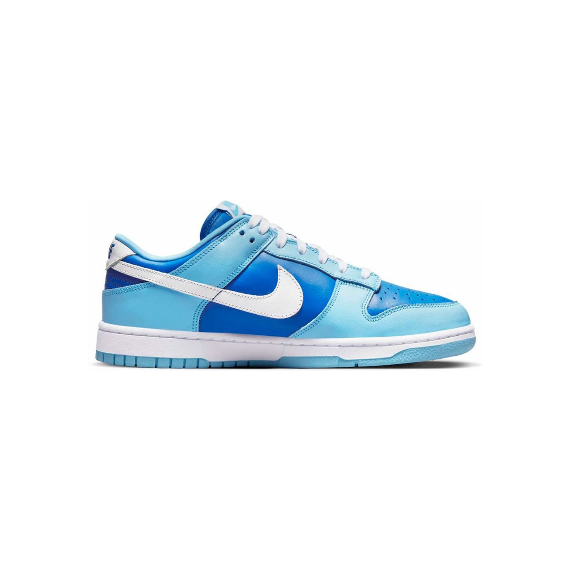The 2022 edition of the Nike Dunk Low Retro QS ‘Argon’ brings back a coveted CO.JP colorway that launched exclusively in Japan in 2001. The smooth leather upper combines a marine blue foundation with powder blue overlays and a crisp white Swoosh. A woven Nike tag adorns the breathable nylon tongue, while the white leather back tab displays a Nike wordmark in slanted block lettering. The sneaker rests on a standard rubber cupsole, featuring white sidewalls and a pastel blue outsole.