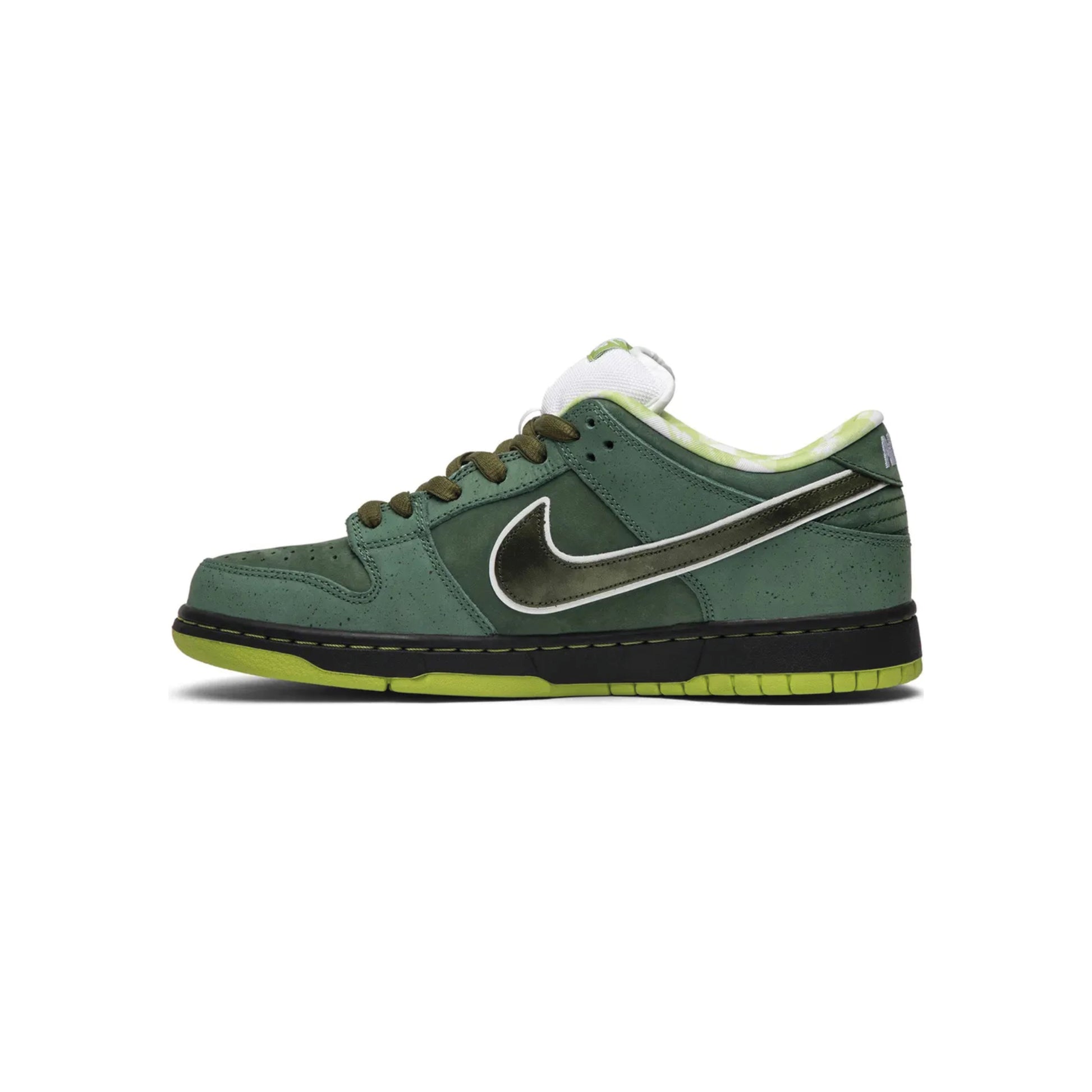 Nike teamed up with Boston-based Concepts to release an exclusive colorway that riffs off of the brand’s crustacean theme. The Concepts x Dunk Low SB 'Green Lobster' features a green colorway with a durabuck and suede upper in Green Stone, with a subtle speckle graphic. The low top also boasts a white padded tongue for comfort, patterns on the inner lining, and a Zoom Air insert in the sockliner for cushioning.