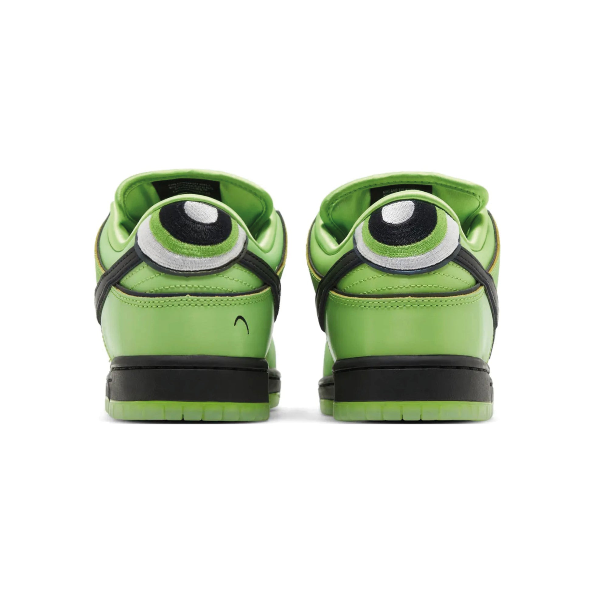 Launching as part of a three-pair sneaker collection celebrating the animated television series, the Powerpuff Girls x Nike Dunk Low Pro SB QS ‘Buttercup’ showcases a bright green shimmering textile upper, lined in satin and accented with a contrasting black Swoosh. A woven Nike SB tag with 'Buttercup' adorns a stuffed tongue marked with tonal Powerpuff Girls branding in a repeating pattern, while heel tabs showcase the large eyes of the Buttercup character. The low-top sits atop on a solid black midsole, supported underfoot by a green-tinged translucent rubber outsole.