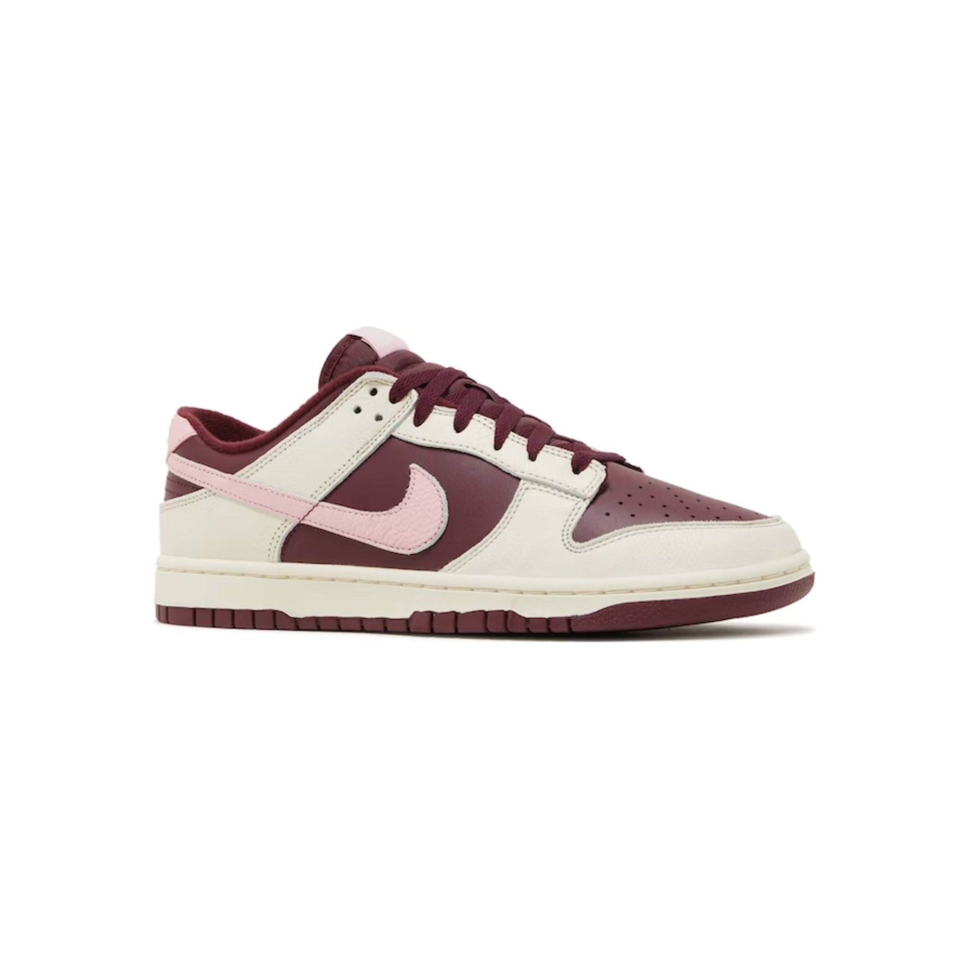 The Nike Dunk Low Premium ‘Valentine’s Day’ updates the heritage basketball shoe with a distinctive color combination inspired by February 14. The low-top dons an all-leather upper, featuring a rich burgundy base with off-white overlays at the forefoot and heel. Soft pink accents make their way to the Swoosh, woven Nike tongue tag and heel tab. Underpinning the low-top is a durable rubber cupsole that pairs vintage off-white sidewalls with a maroon rubber outsole.