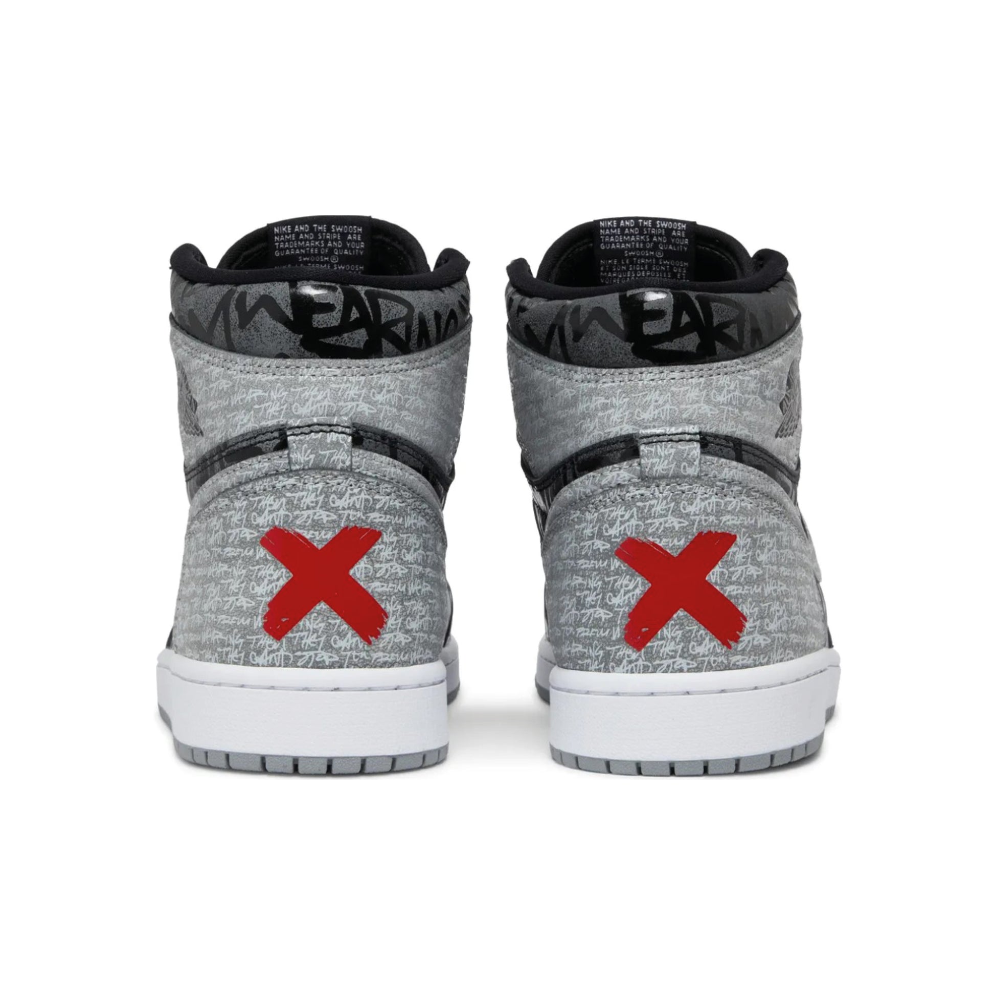The Air Jordan 1 High OG ‘Rebellionaire’ showcases a unique design that ties into the shoe’s mythic ‘Banned’ narrative, wherein Michael Jordan incurred a $5,000 fine each time the rookie wore his signature black and red kicks on the court — a violation of the NBA’s uniform dress code at the time. The iconic high-top features a leather upper finished in two-tone color blocking reminiscent of the OG ‘Shadow’ colorway. Unique details include the ‘Banned’ AJ1’s red ‘X’ on the heel, along with an all-over print that spells out ‘They Can’t Stop You From Wearing Them,’ which paraphrases a line from an original Air Jordan 1 TV commercial from 1985.