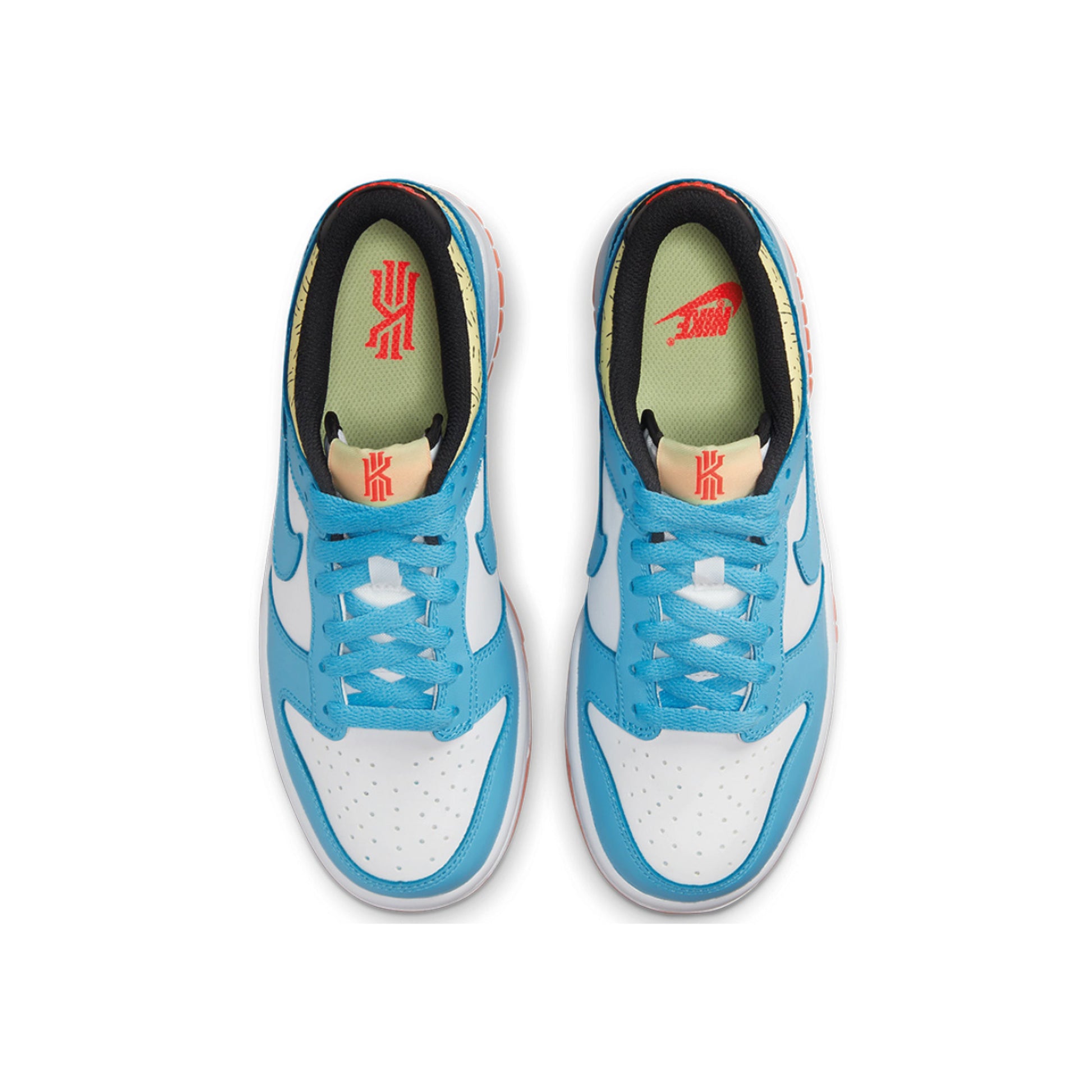 The Nike Dunk Low Kyrie Irving Baltic Blue (GS) for grade-school students was designed to pay tribute to NBA star Kyrie Irving’s distinct flair on the basketball court.