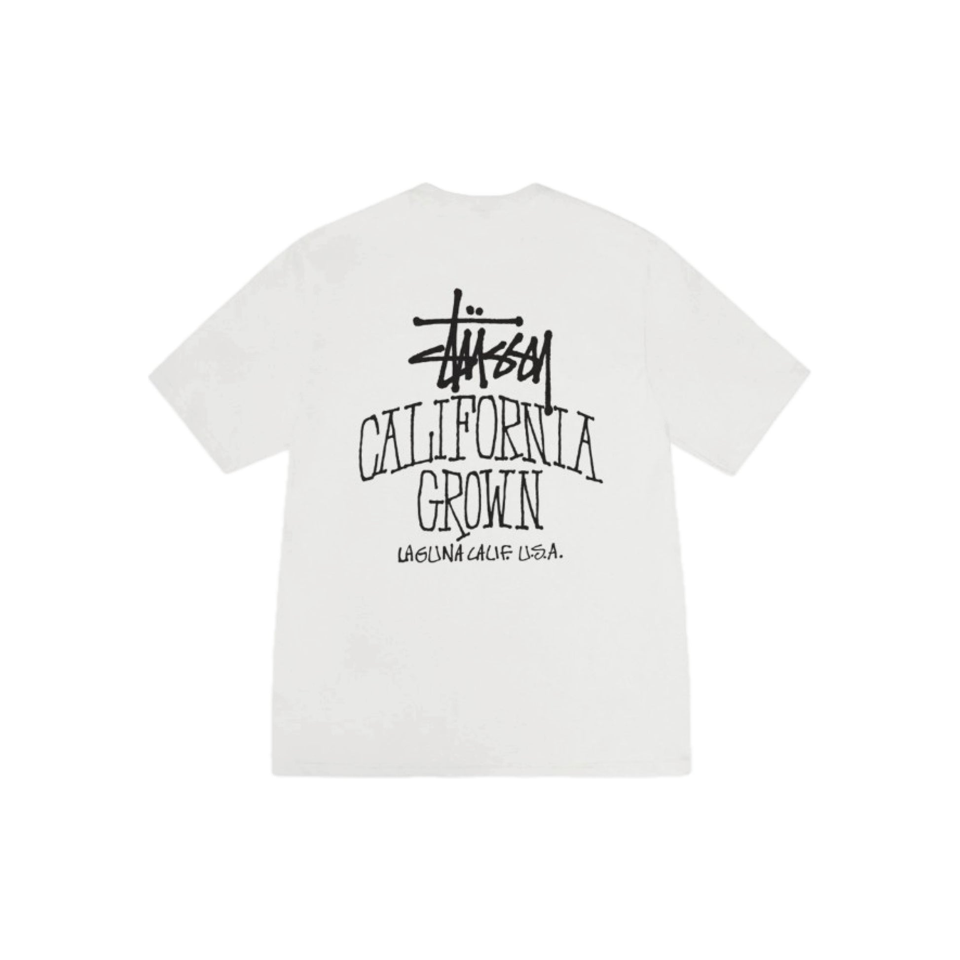 The front features a small Stüssy Cali Grown graphic print, while the back showcases a bold oversized design with “California Grown, Laguna CA/CE USA” lettering — a nod to Stüssy’s birthplace. With its relaxed fit and clean natural colorway, this tee is a versatile staple for everyday wear.