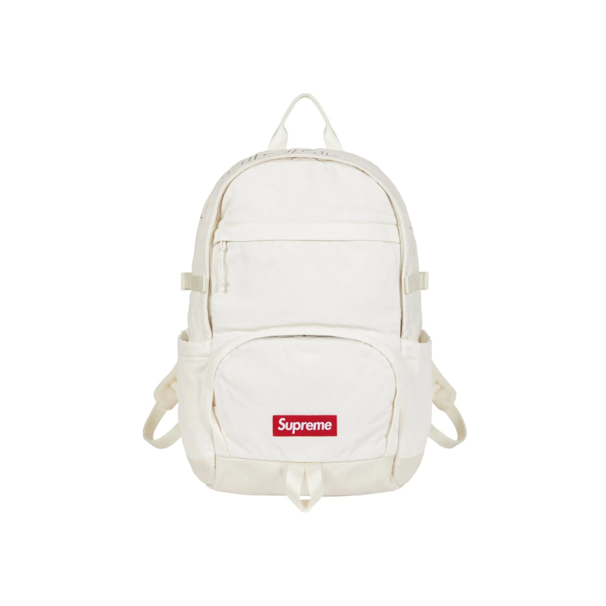 The Supreme Backpack 'Realtree® AP White' combines rugged outdoor styling with Supreme’s signature streetwear edge. Built from durable polyester with a reinforced base, this backpack features a full Realtree® AP white print and functional storage throughout. The design includes a large main compartment, a front zip pocket, and dual side pouches for added convenience. Adjustable padded straps ensure comfort, while the embroidered box logo on the front pocket gives it an unmistakable Supreme finish.